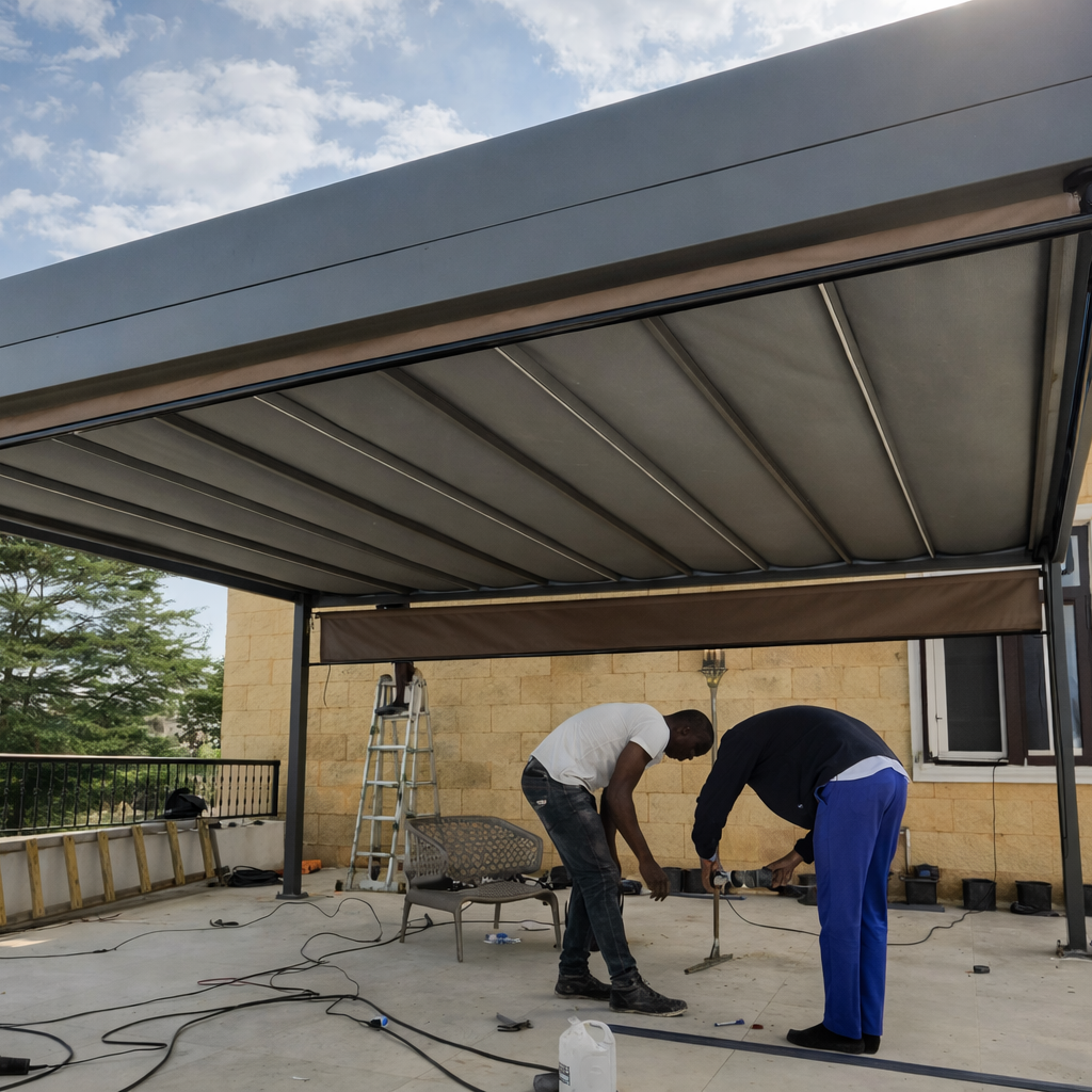 Buy Pergola Online in Nigeria from Adunnis Imports . 4x3m open & Close bioclimatic Versatile Steel Louvered Lekki Pergola roof Pergo...